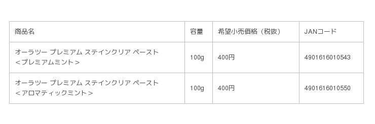 2015年の3月に行った「オーラツー ブレスファインシリーズ」のリニューアルに続き、この度、「オーラツー プレミアム ステインクリア ペースト」を改良新発売してまいります。女性の自信のもてる笑顔をめざす「くちもとBeauty」のコンセプトのもと、これからも女性たちの輝く美しさを応援してまいります。