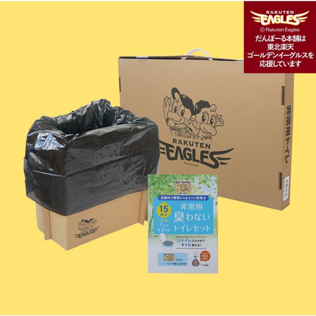 災害時、緊急時の非常用トイレ 「kawaya-dana (カワヤダナ) 15回分」に、オフィシャルスポンサーとなった楽天イーグルスの公式キャラクター「クラッチ&クラッチーナ」のロゴデザインをあしらったデザインが新登場。災害に備えて所持しておくと安心なアイテムです。