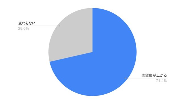 アンケート回答者の205名(71%)が「選考に進む志望度が上がる」と回答