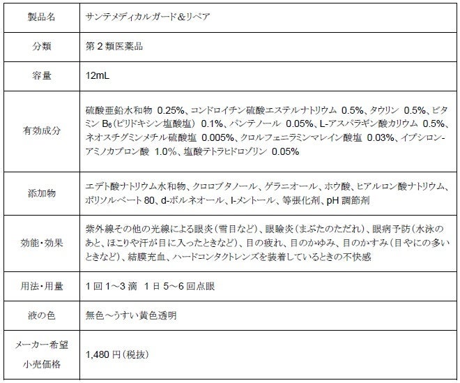 *?「サンテメディカルシリーズ」:サンテメディカル12 第2類医薬品 目の疲れ、サンテメディカルガード&リペア 第2類医薬品 目の炎症(雪目など)、サンテメディカルアクティブ第2類医薬品 目のかすみ(目やに多いときなど)、