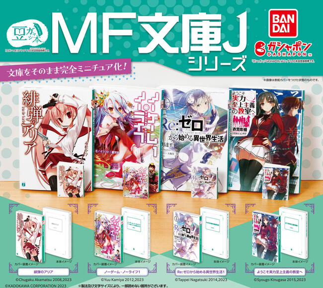 株式会社バンダイ ベンダー事業部は、株式会社KADOKAWAが発行している「MF文庫J シリーズ」をミニチュア化した、『豆ガシャ本 MF文庫J シリーズ』(1回500円・税10%込、全4種)を2023年11月第5週から順次、全国のガシャポンバンダイオフィシャルショップ、玩具売場、量販店、家電店などに設置されたカプセルトイ自販機にて発売いたします。