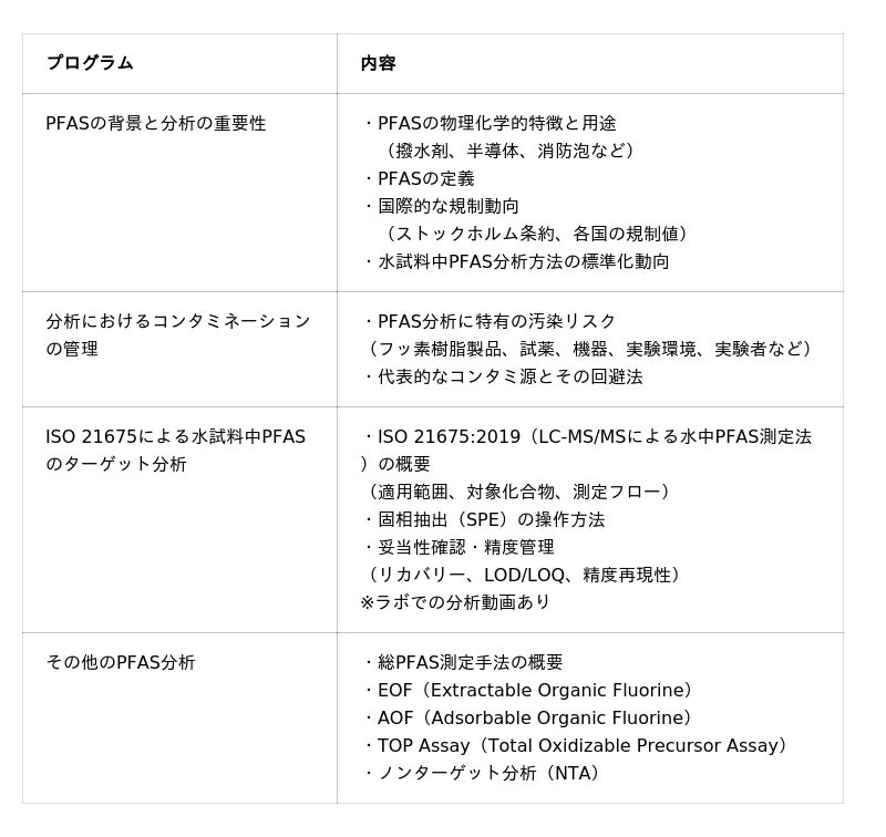タイトル:PFAS分析・標準化マスター講座〜信頼できる分析と国際標準の最新動向〜内容:ウェビナー(オンデマンド配信)