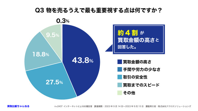 「買取金額の高さ」と答えた人が43.8%と、約半数近くの人は買取金額を最優先にしていることが分かりました。