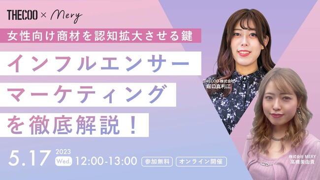 株式会社MERY(本社:東京都千代田区、代表取締役社長:藤田 欣司)は、THECOO株式会社(本社:東京都渋谷区、代表取締役:平良 真人)とともに、インフルエンサーマーケティングを活用したプロモーション施策を行う担当者向けのウェビナーを「女性向け商材を認知拡大させる鍵 インフルエンサーマーケティングを徹底解説!