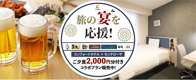 コンフォートホテルとモンテローザが、旅の宴を応援! 白木屋・魚民・目利きの銀次・山内農場などがお得に利用できるコラボプラン登場