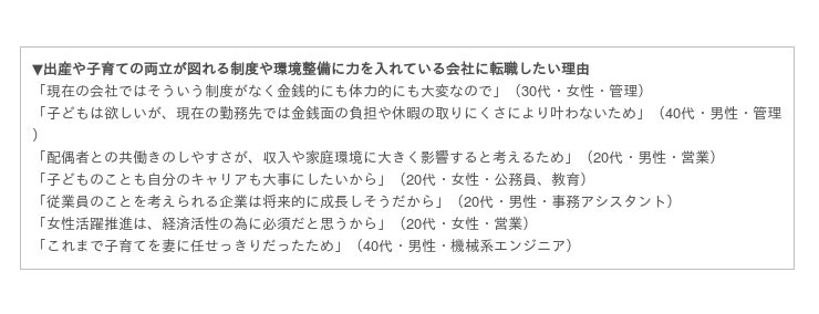 今回の調査では、出産・子育てと仕事を両立することが男女ともに依然難しい状況であることが浮き彫りになりました。