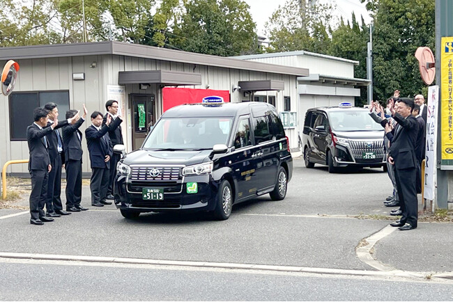日本交通株式会社(本社:東京都千代田区、代表取締役社長:若林泰治、以下「日本交通」)の関西エリア子会社である東京・日本交通株式会社(本社:大阪府大阪市浪速区、代表取締役社長:金田隆司、以下「東京・日本交通」)は、株式会社SMART(本社:大阪府岸和田市、代表取締役:長谷川幸則、以下「SMART」)と業務提携し、2023年12月19日にSMART本社営業所にて出発式を開催しました。日本交通の関西エリア子会社で構成する「日本交通グループ関西」においては4社目の業務提携会社であり、泉州交通圏へは初進出となります。