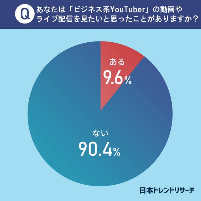 9.6%と、約1割の方がビジネス系YouTuberの動画やライブ配信を「見たいと思ったことがある」と回答しました。