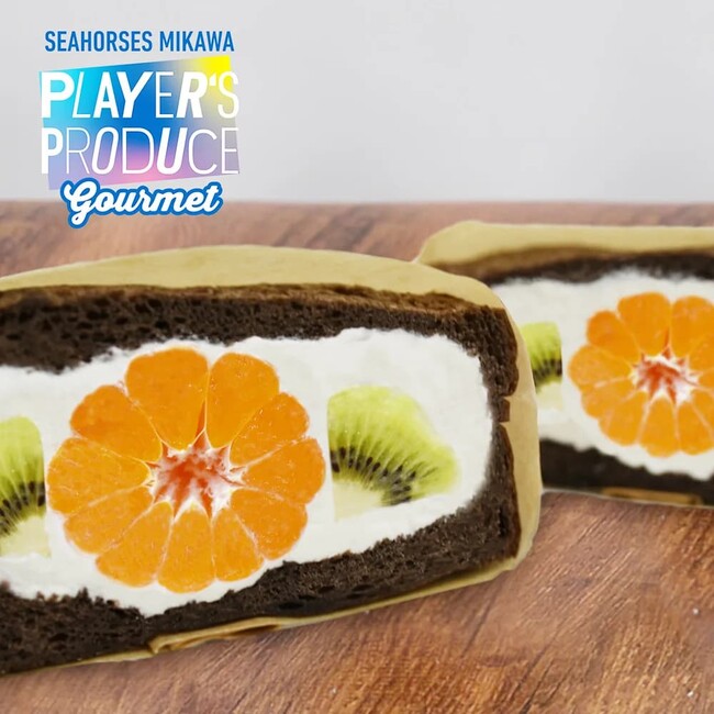 実家がパン屋で、大のパン好きで知られる#7長野誠史選手プロデュースグルメ第3弾は、甘酸っぱいみかんとキウイをサンドした見た目も可愛らしい一品。