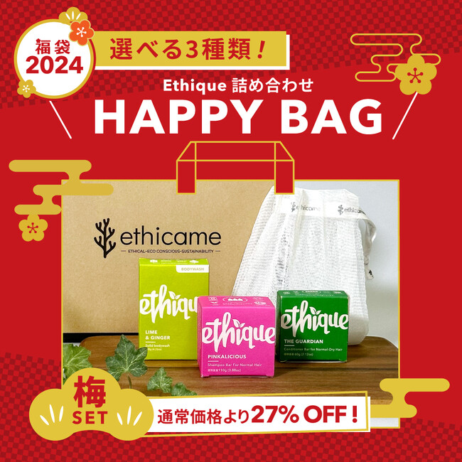 NZ発サステナブルなビューティーバーブランド「Ethique(エティーク)」の人気アイテムを詰め合わせた福袋は、「松」「竹」「梅」の3セットご用意いたしました。