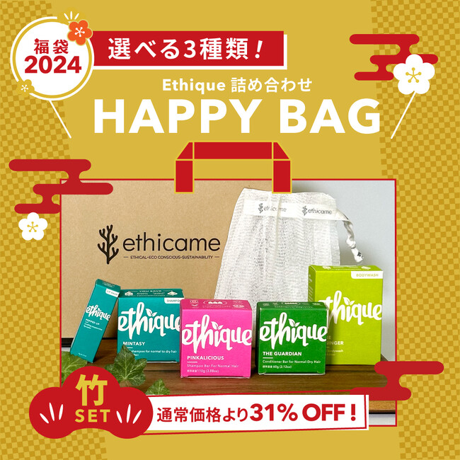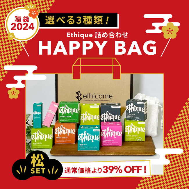 環境・社会・人に優しい製品を取り扱い、健康的なライフスタイルの提案を行っている「ethicame(以下『エシカミー』)https://ethicame.com/ 」(運営会社:株式会社ピー・エス・インターナショナル、本社:東京都港区、代表取締役会長兼社長兼CEO 浜口 直太、代表取締役副社長兼COO 北川 睦子)は、2023年12月25日(月) 〜2024年1月9日(火) に「Ethique詰め合わせ HAPPY BAG」キャンペーンを開催いたします。