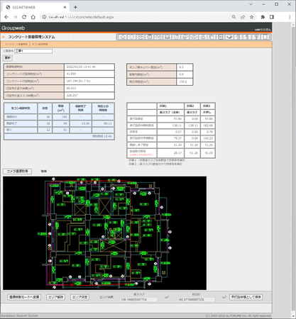 コンクリート打設管理システムは、Web業務システムGSS(グループウェア・サポートシステム)経由で動作するアプリケーションとして、フォーラムエイトより2022 年度を目途に販売開始を予定しています。