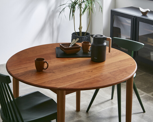無垢材をぜいたくにもちいた丸テーブルが新登場。