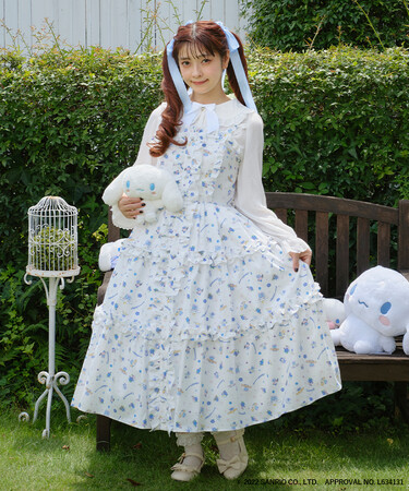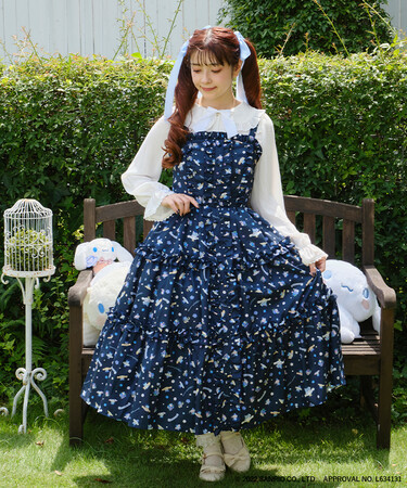 20周年をお祝いしてシナモンフレンズが大集合した総柄を大胆に使ったジャンパースカートです。