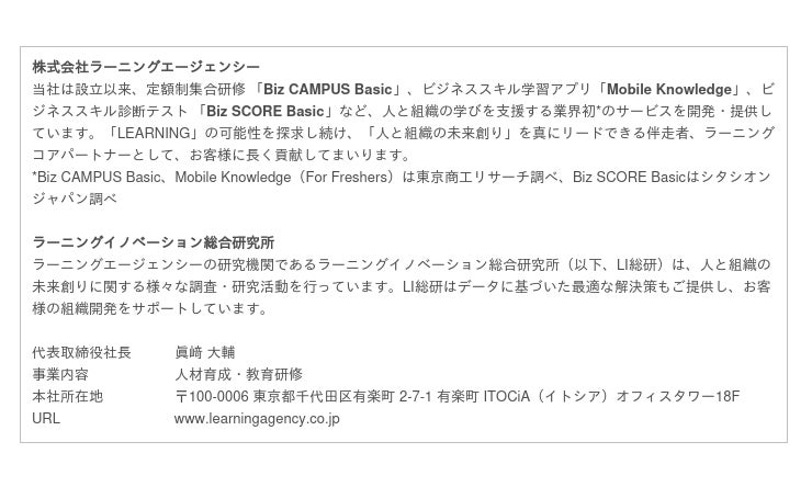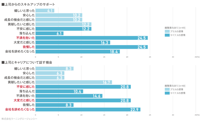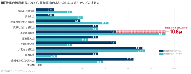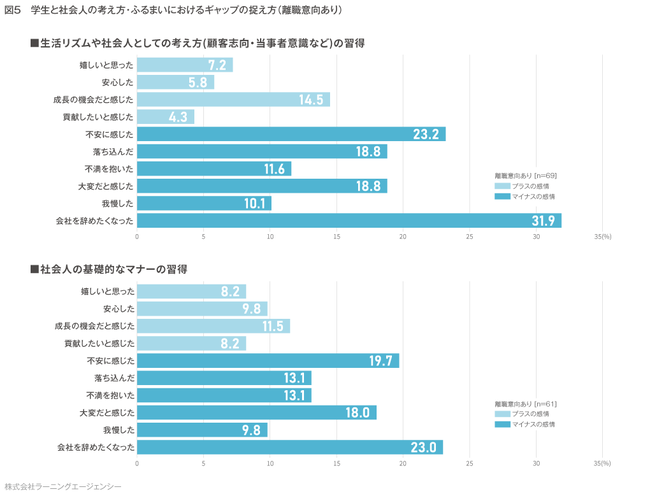 *本調査を引用される際は【ラーニングエージェンシー「若手社員の意識調査(社会人1年目の入社前後のギャップ(離職意向別)編)】と明記ください