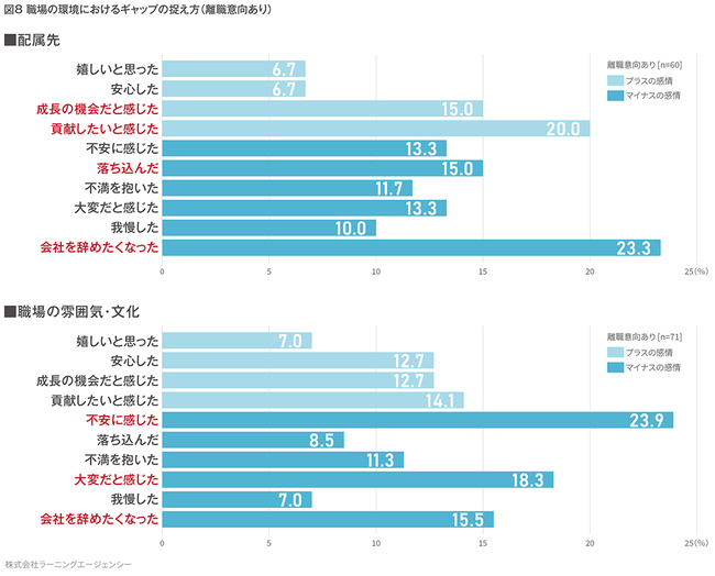 職場の雰囲気や文化のギャップについて、離職意向のある新人の捉え方を調査しました。(図8)