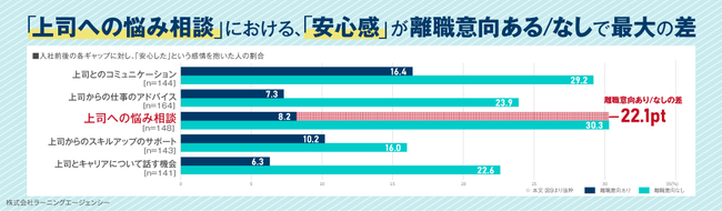 離職意向のある人とない人で、入社前後のギャップに10ptの差!離職意向ありは「上司との関係性」で“安心感”を得られていない結果も