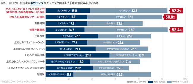 ここからは、離職意向のある新人に着目し、感じているギャップがネガティブなものなのか、ポジティブなものなのか、詳細を見ていきます。