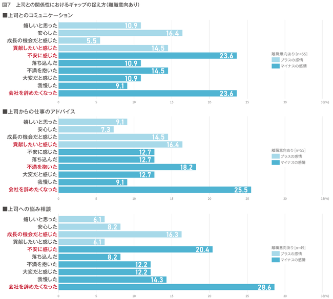 続いて、上司との関係性において、離職意向のある人がギャップをどのように捉えているか調査しました。(図7)