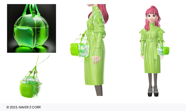 今回、新たにアバターベースのソーシャルプラットフォーム「ZEPETO(ゼペット)」にて販売開始となったアイテムは、バッグとウェア各2点の計4アイテム(色違いを含めると7アイテム)です。