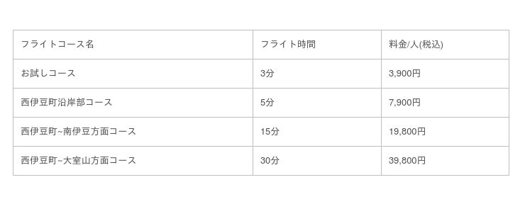 ※ 最少催行人数は2名で1機あたり3名までご搭乗できます。