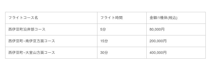 1機体(貸切)あたりの金額です。