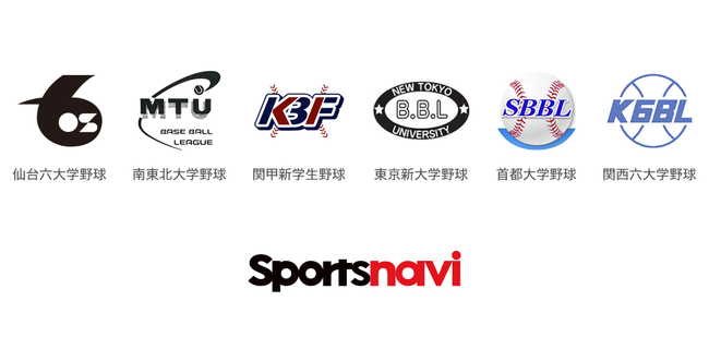 今春、スポーツナビで配信を予定しているのは、仙台六大学野球、南東北大学野球、関甲新学生野球、東京新大学野球、首都大学野球、関西六大学野球の 6 つのリーグ戦です。スポーツナビでは、大幅に対象リーグ数を拡大したため、「大学野球」をジャンルとして新設し、ライブ配信と共に、データスタジアム社協力のもと試合速報も掲載していき、よりリッチな試合体験をユーザーにご提供いたします。