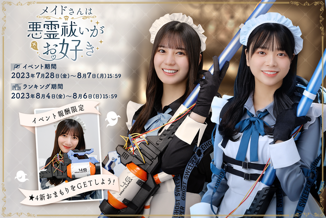 さらに!「メイドさんは悪霊祓いがお好き」の個人総合ランキングと今後開催されるイベントにて上位入賞すると特別なリアルプレゼントが貰えるチャンス!詳細はゲーム内お知らせをご確認ください。