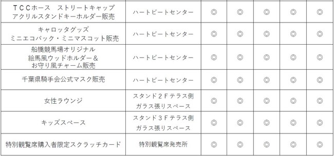 出店場所:スタンド2Fデッキ付近・スタンド1F投票所付近ほか