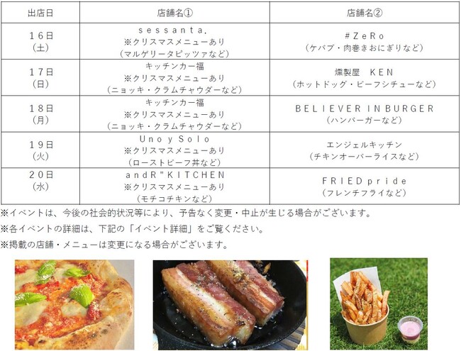 今開催はクリスマスシーズンを彩るあったかグルメキッチンカーが集合!