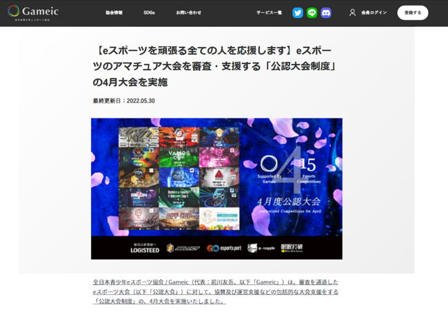 各月ごとに開催した公認大会 -Gameic Event- を協会のHP上にニュースとして掲載させていただきます。