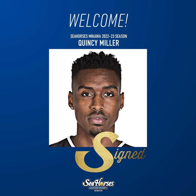 この度、クインシー・ミラー選手と2022-23シーズンの選手契約が決まりましたので、お知らせいたします。