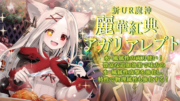 2021年12月23日(木)定期メンテナンス終了後より、人気投票1位に輝いた「アガリアレプト」が特別な装いの「麗華紅典アガリアレプト」となって降臨する「人気投票ゴエクロフェス」を開催中です。