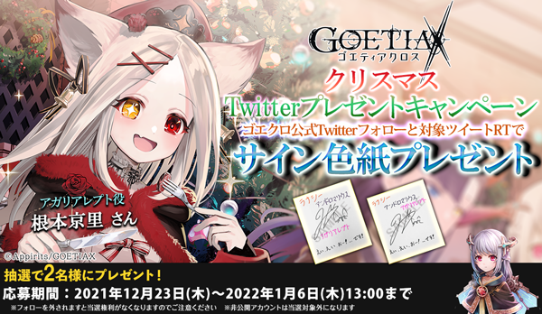 クリスマスTwitterキャンペーン!アガリアレプト役・根本京里さんのサイン色紙を2名様にプレゼント