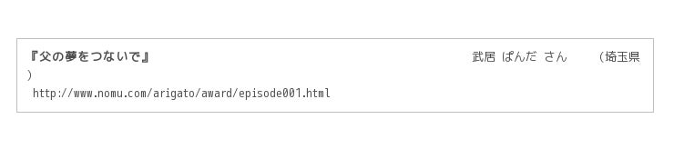 キャンペーン事務局の選考により決定した入賞エピソードを発表いたします。