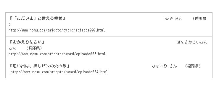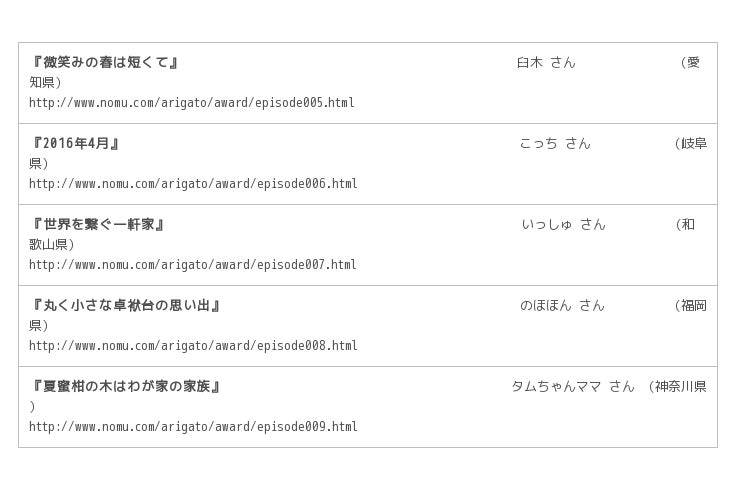 第1回~第3回の入賞エピソードは「ありがとう、わたしの家」キャンペーンサイトでご覧ください。