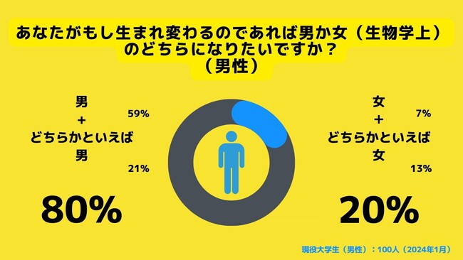 ■女に生まれ変わりたい男性は20%、男に生まれ変わりたい女性は42%。