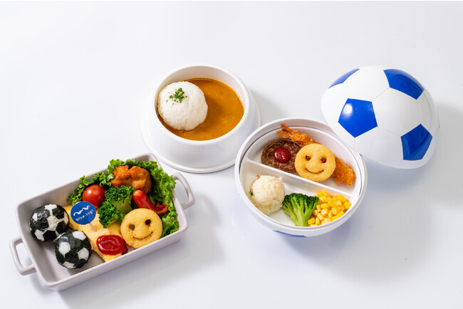 見た目だけでも楽しめちゃうサッカーボールおにぎりのお弁当や、サッカーボール型の器にお子さまが大好きなメニューを盛り込んだキッズプレート
