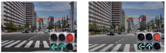 C1カメラ(左)とC2カメラ(右)の解像度比較(信号認識)