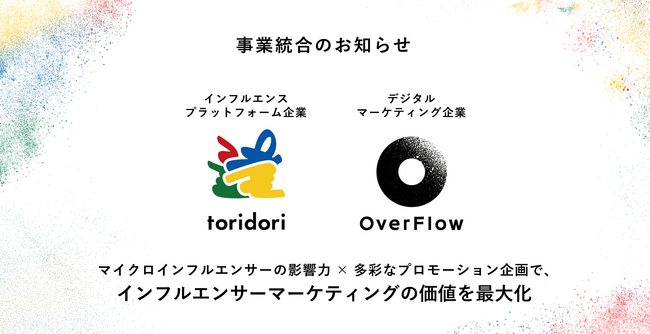 インフルエンス・プラットフォーム企業toridoriが、デジタルマーケティング企業OverFlowと事業統合