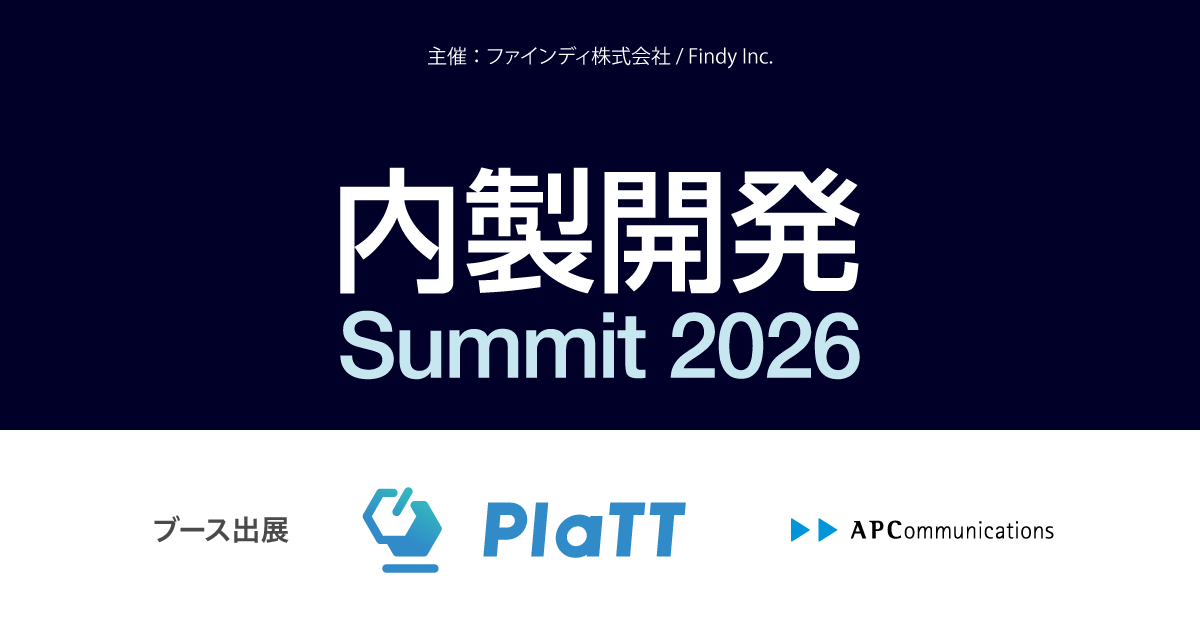 「内製開発Summit 2026」に協賛、開発者ポータル「PlaTT」をブース出展