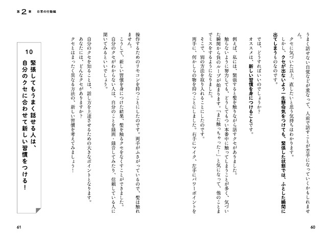 その経験から試行錯誤をして生み出した「緊張してもうまく話せる方法」を、実践できる習慣に落とし込んで紹介していきます。