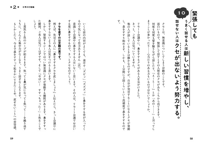 10 緊張してもうまく話せる人は新しい習慣を増やし、話せない人はクセが出ないよう努力する。