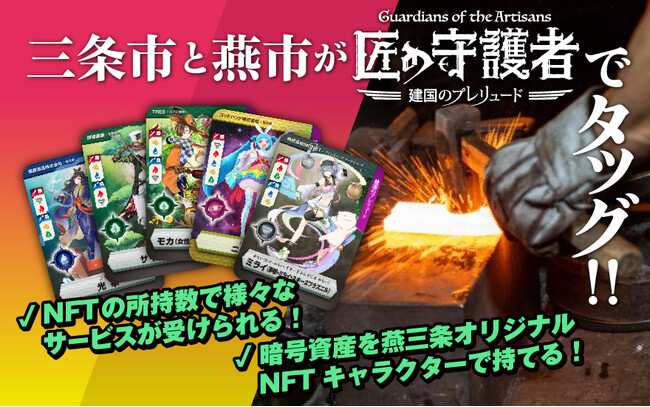 ●三条市のふるさと納税にNFTトレカ「燕三条NFT 匠の守護者」が燕市との共通返礼品として採用され、5月18日 (木)から三条市および燕市のふるさとチョイス返礼品ページにて寄付申込が可能。楽天ふるさと納税とふるなびでは5月22日(月)から寄付申込受付が開始されます。