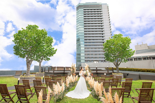 大阪市内にありながら都会の喧騒を離れたアーバンリゾートホテル、ハイアット リージェンシー 大阪(総支配人:ミリアム バロリ 大阪市住之江区南港北1-13-11)は、宴会棟9階にあたる屋上ガーデンエリアにて、2022年の10月以降に挙式を予定される方へ「ガーデンウエディング セレモニー」のご予約を新たに承り開始いたします。