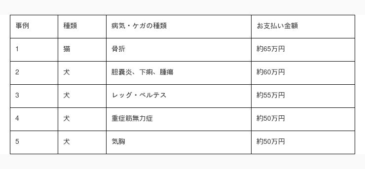 ※上記の数値は、PS保険加入者さまから請求されたものであり、ペットメディカルサポートが補償する範囲を示すものではありません。また、平均や水準を示すものでもありません。