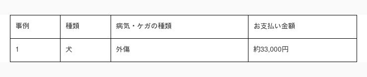 保険金のお支払いは、上記のように高額なものに限りません。次に、平均的なお支払い事例としてペットの外傷の診療をご紹介します。