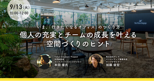 デザイナーズオフィスを手がけ、「はたらく」をデザインする株式会社ヴィス(本社:大阪市北区、代表取締役社長:金谷智浩)は、2022年9月13日(火)に無料オンラインセミナー「いま、『行きたくなるオフィス』のつくり方 -個人の充実とチームの成長を叶える空間づくりのヒント-」を開催することをお知らせします。