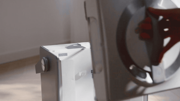 お掃除終了後、本体をステーションに戻しワンタッチするだけで、約5.5mのケーブルを自動収納。またお手入れはクリーニングパットを取り外して、水洗いするだけ!モップを洗えば何度でも繰り返し利用できるため、ランニングコストを抑えられます。