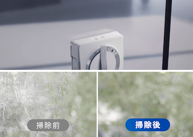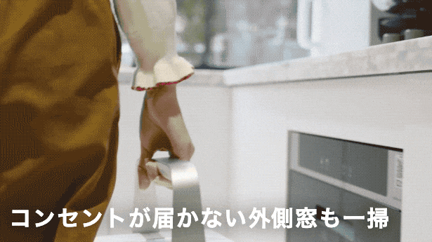 自社独自の3方向ノズル噴水技術により、水を効率よく均等に噴霧し、水垢を残さず窓を綺麗に洗浄。窓枠ギリギリまで接近できる進化したクリーニングパットにより、隙間掃除もしっかり。拭き残しによる2度ふきの手間は要りません。